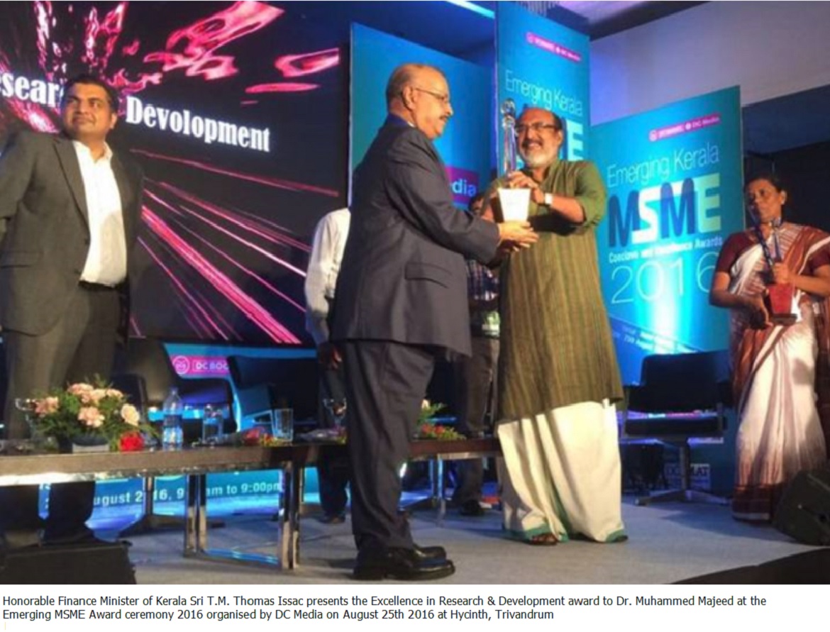 Sabinsa’s parent company Sami Labs Ltd. was recently honored with the DC Media Kerala MSME Excellence In Research and Development Award in conjunction with an event highlighting the growth of Micro, Small and Medium size businesses in the state of Kerala, India.